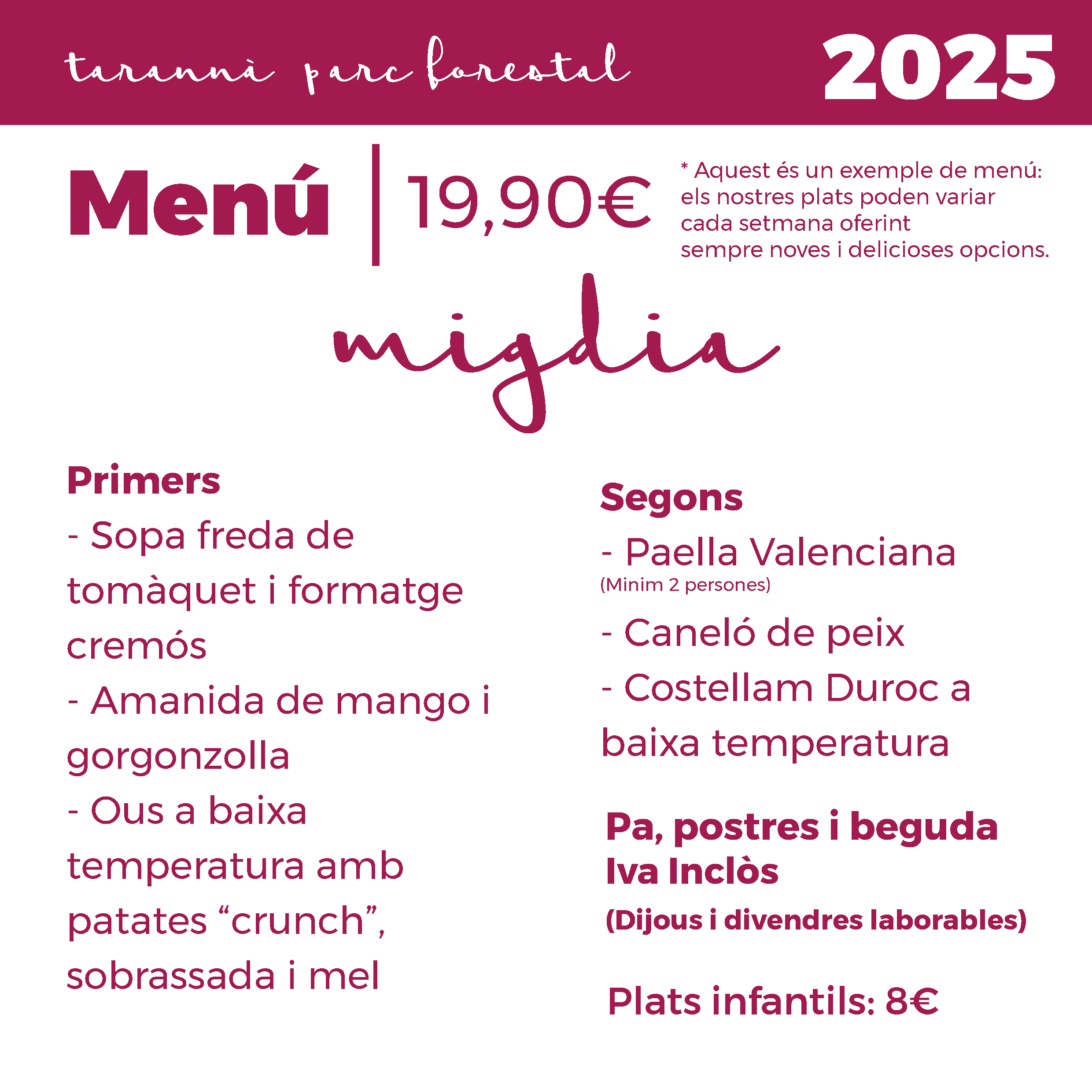 Menús per a grups